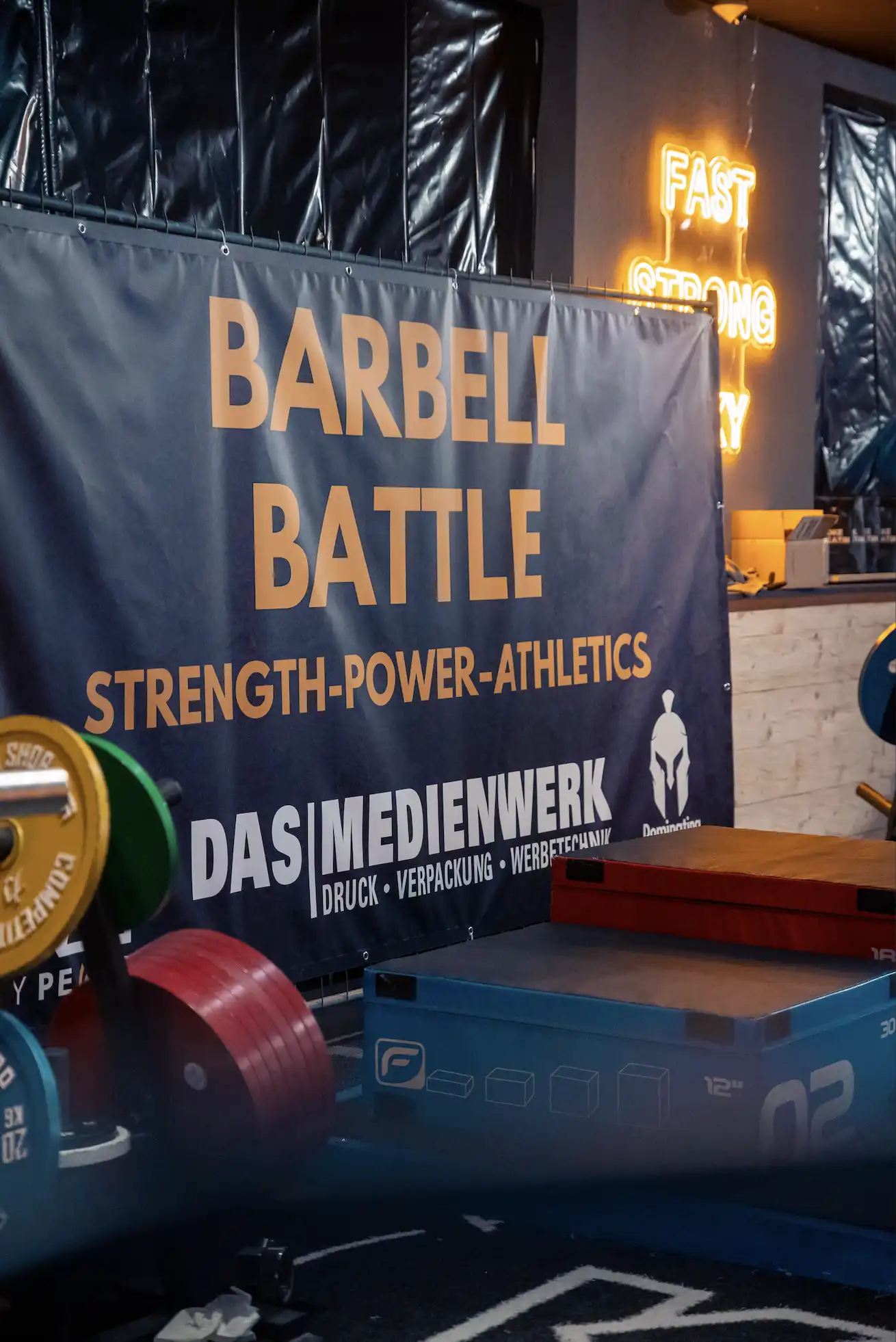 Klare Event-Optik für Athletinnen und Athleten, auf und neben der Plattform.